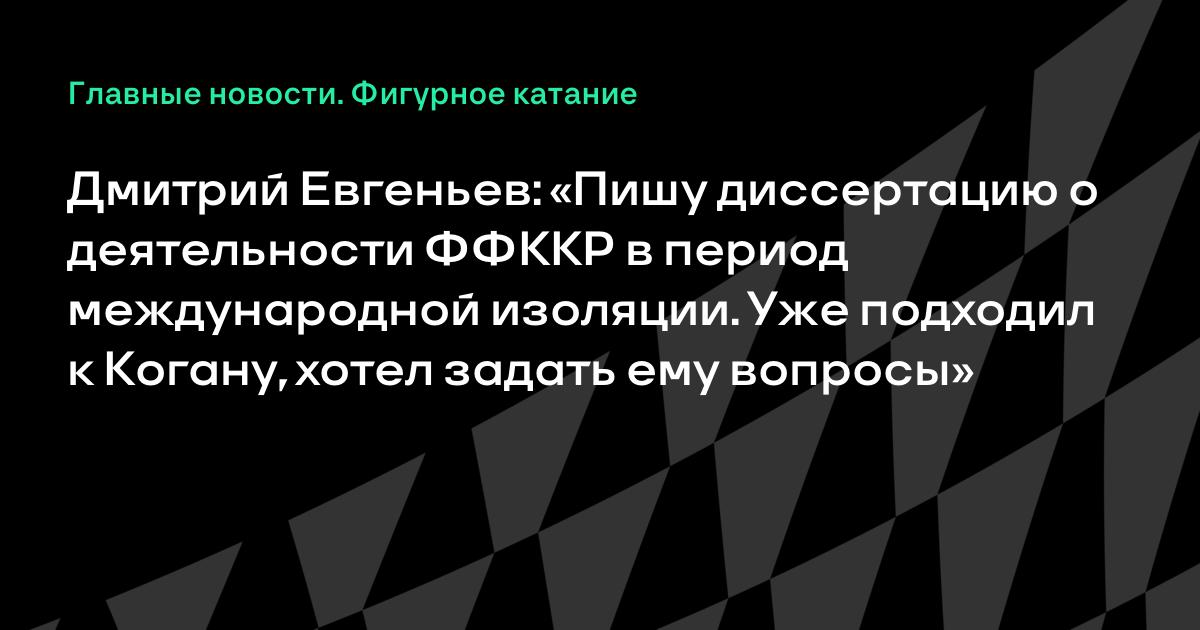 Фигурист Евгеньев: пишу диссертацию о деятельности ФФККР в период изоляции.