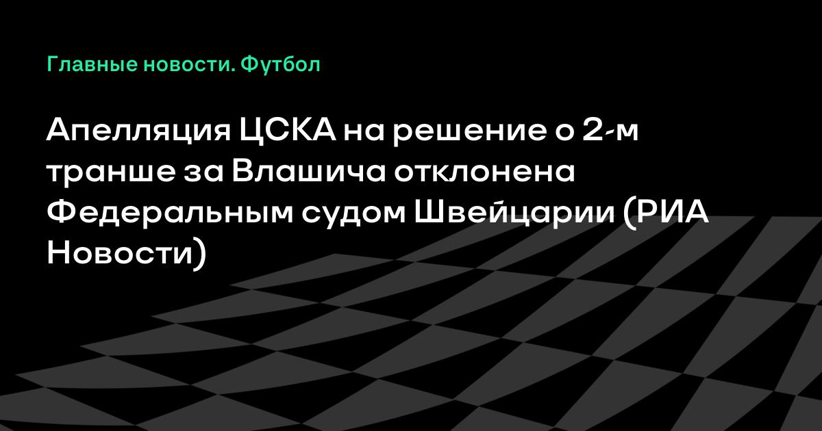 Апелляция ЦСКА на решение о 2-м транше за Влашича отклонена Федеральным судом Швейцарии (РИА Новости)