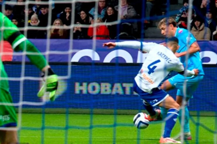 «Зениту» после ВАР дали пенальти в игре с «Динамо» – Касерес фолил на Мостовом на линии штрафной. Андрей забил с точки