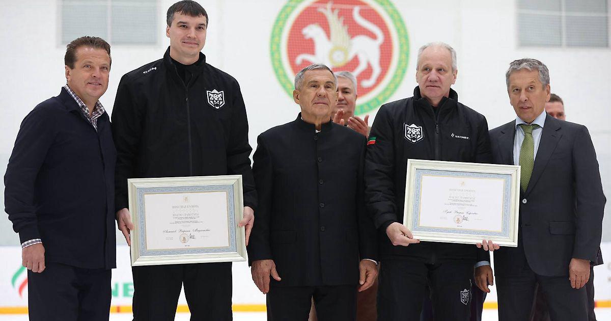 Данис Зарипов и Рустам Минниханов чествовали победителей Кубка Третьяка.