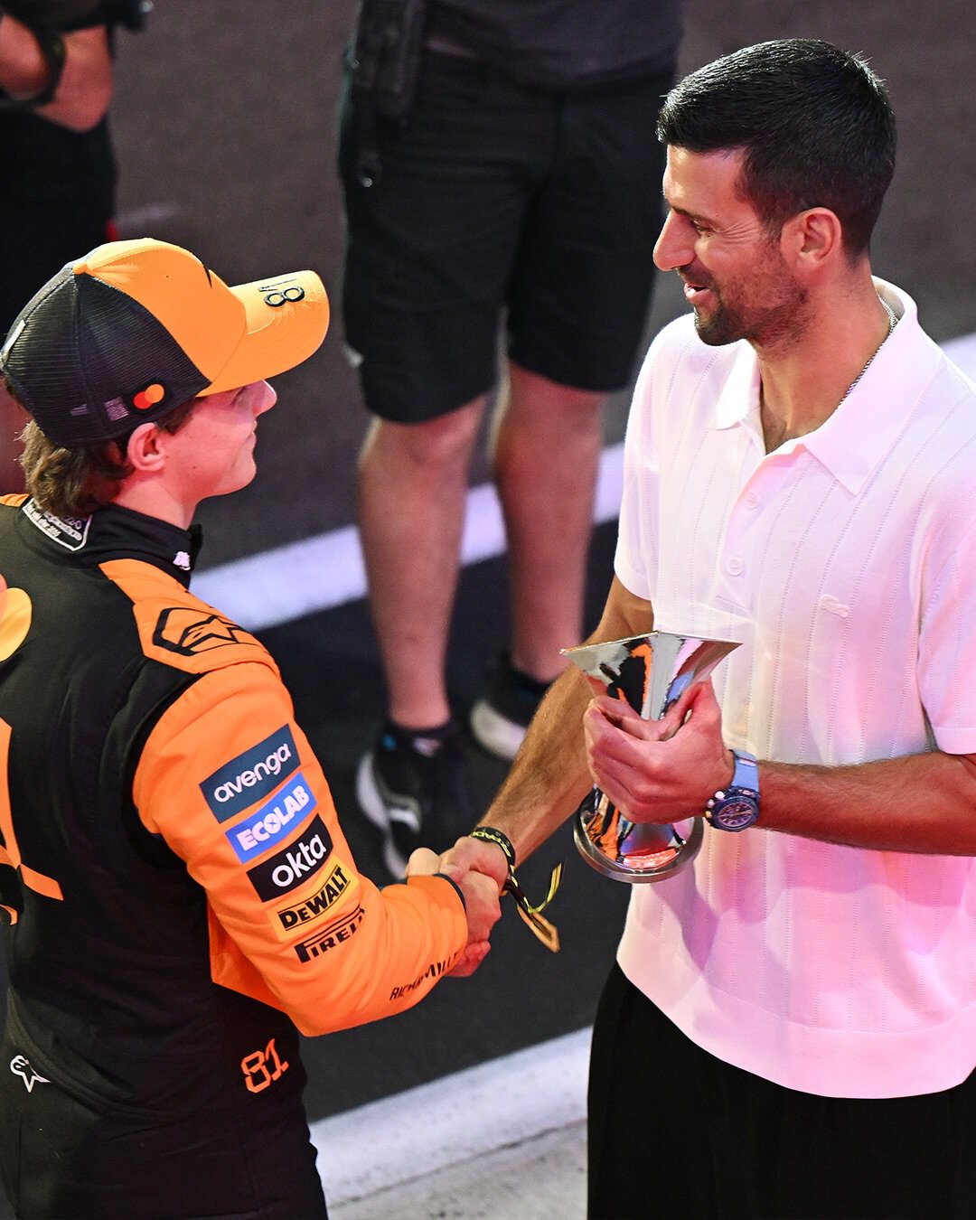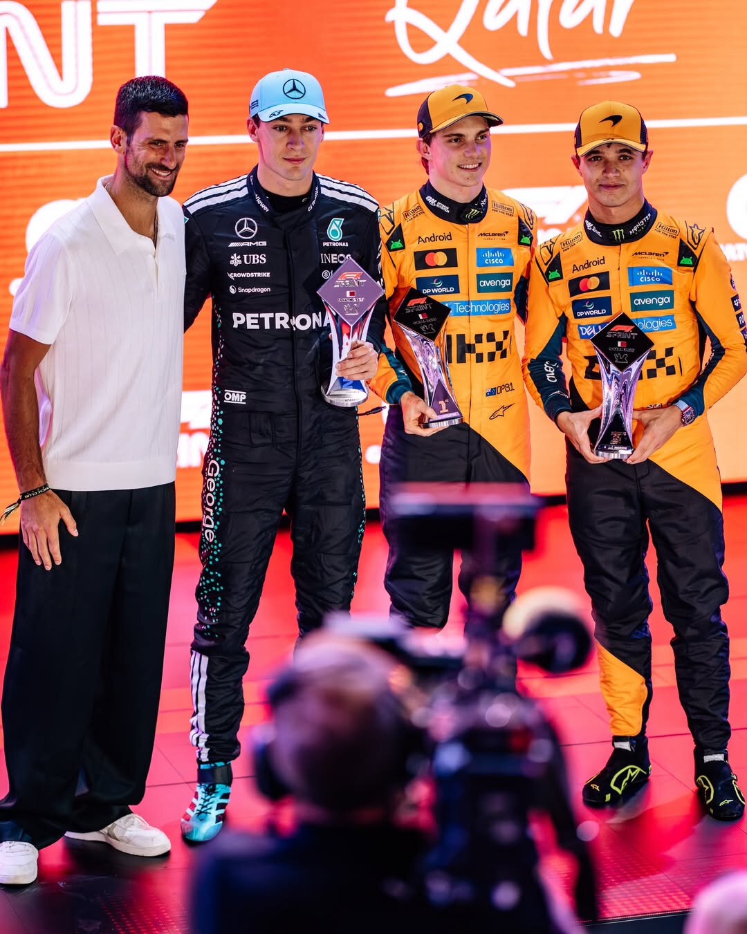 24-кратный чемпион турниров «Большого шлема» Новак Джокович вручил награды призерам спринта на Гран-при Катара – Оскару Пиастри, Джорджу Расселлу и Ландо Норрису.
