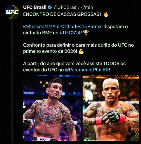 Анонс боя за титул BMF опубликовал аккаунт UFC Brasil, но позже пост удалили.