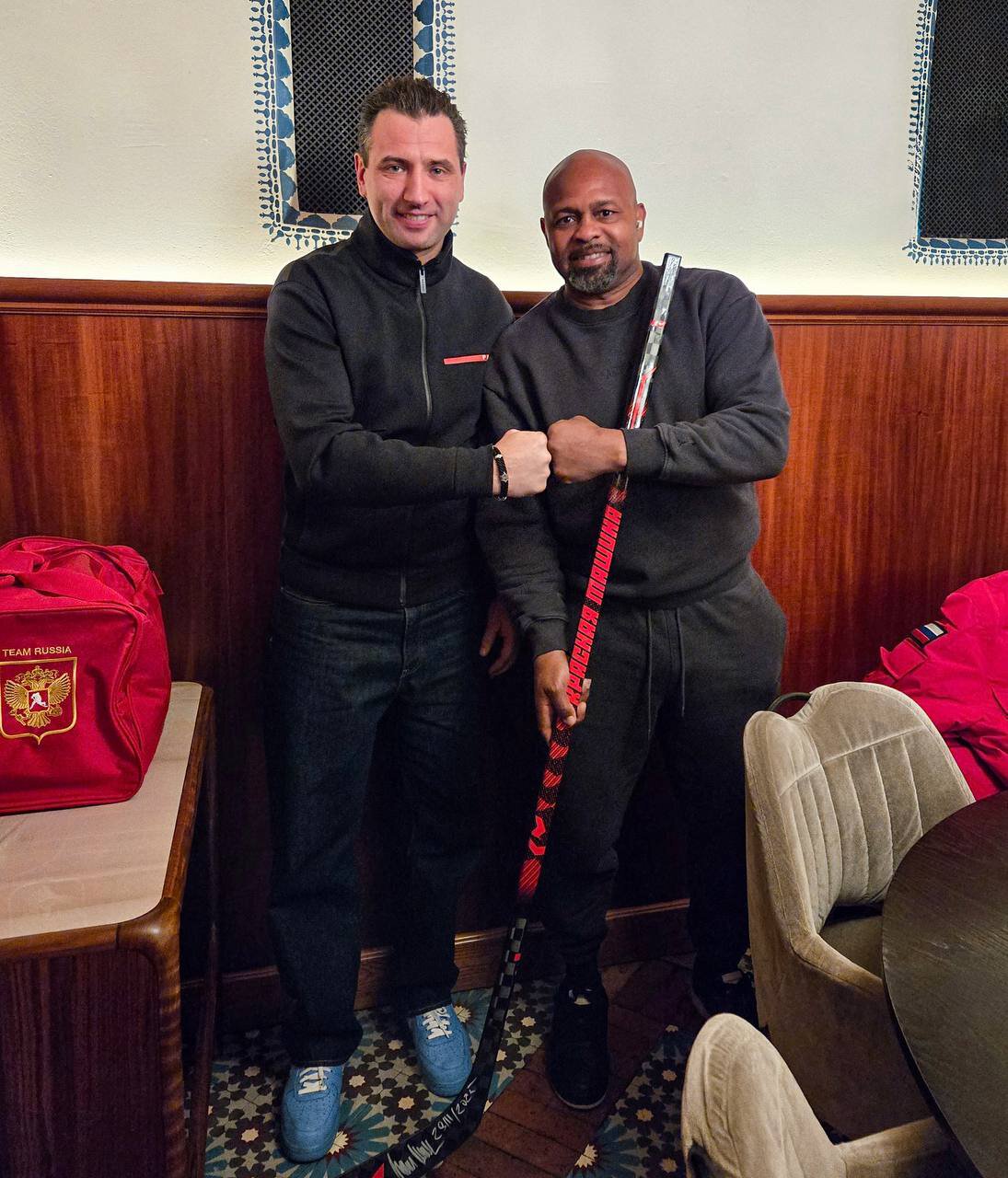 Главный тренер сборной «России 25», член совета директоров «Динамо» опубликовал фото с бывшим абсолютным чемпионом мира по боксу Роем Джонсом – младшим.