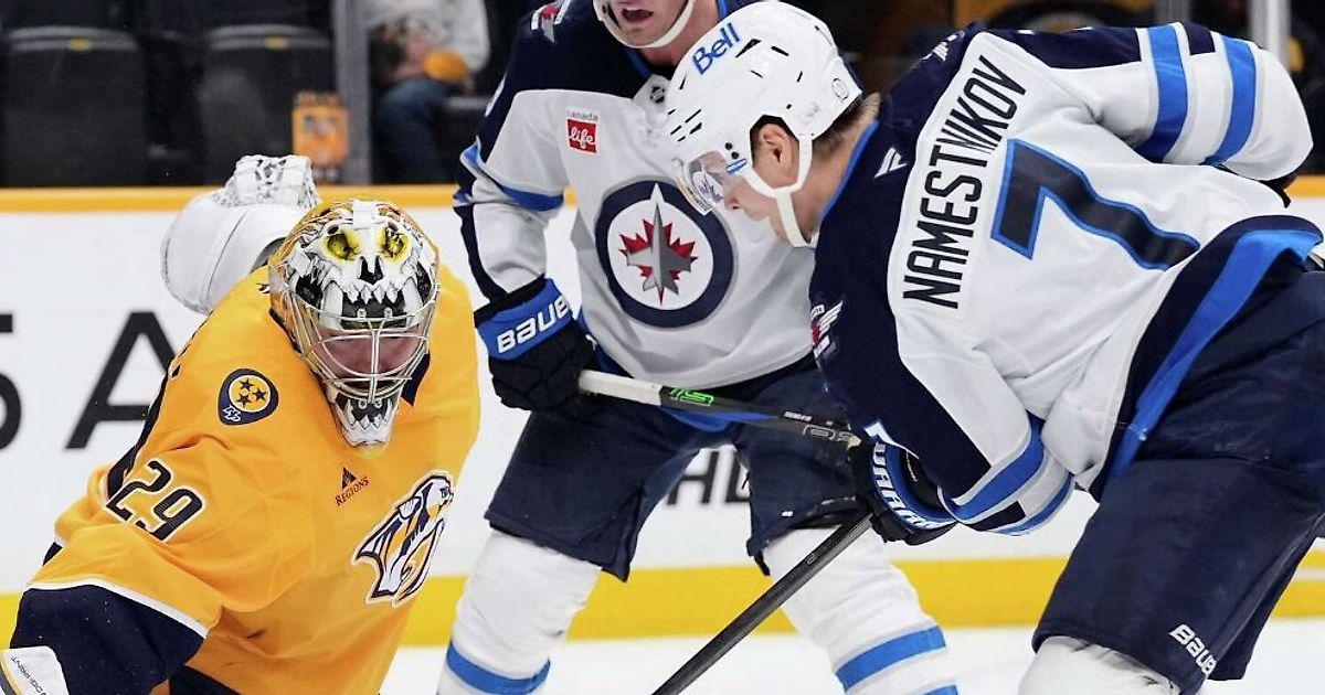 Форвард «Виннипега» Владислав Наместников сделал результативную передачу в матче регулярного чемпионата НХЛ с «Нэшвиллом» (5:2).
