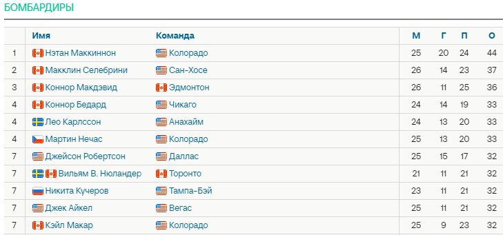 Маккиннон увеличил отрыв в гонке бомбардиров НХЛ – у него 44 очка в 25 играх. Селебрини – 2-й с 37 баллами, Макдэвид – 3-й с 36
