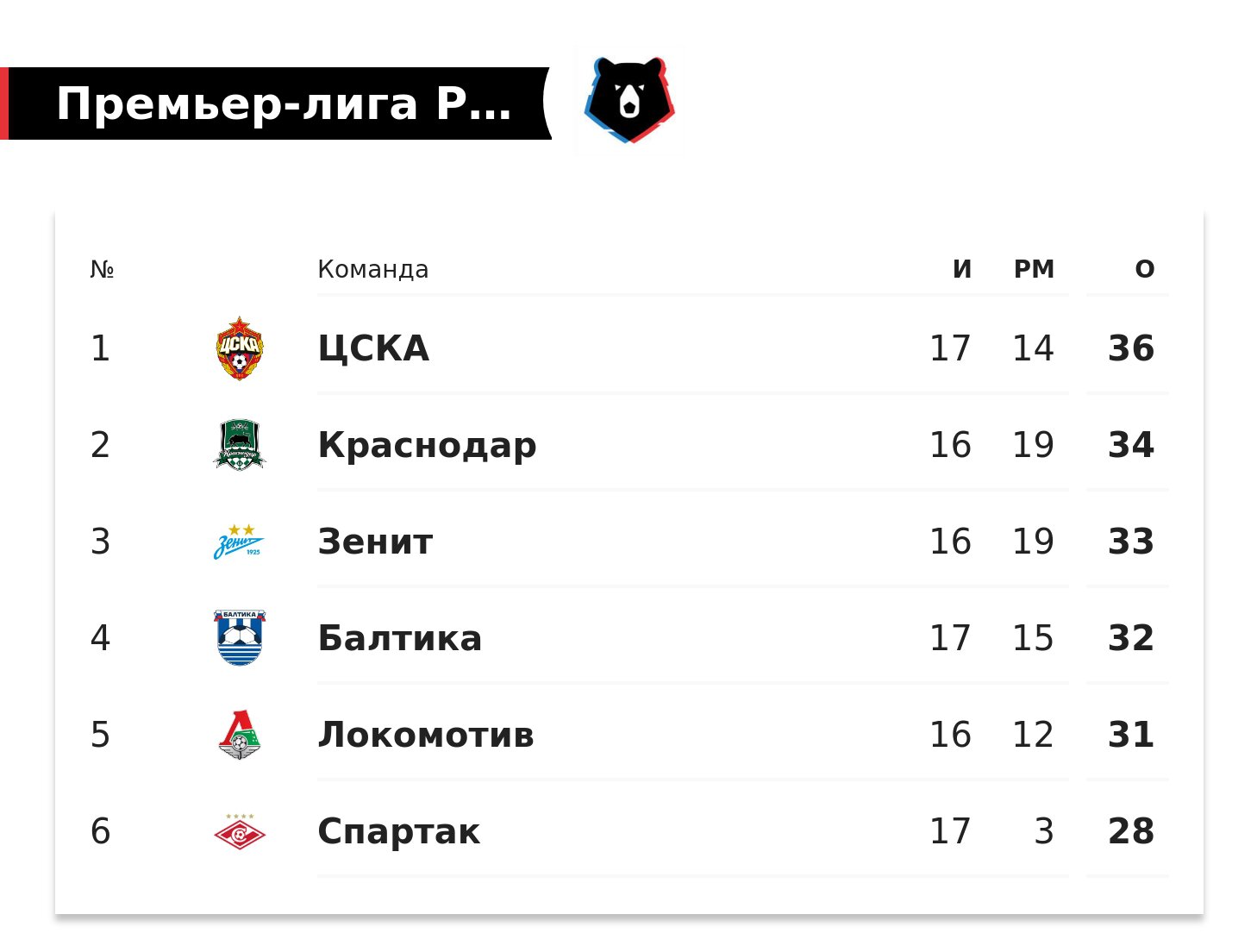 Калининградцы с 32 очками после 17 матчей занимают 4-е место в турнирной таблице Мир РПЛ.
