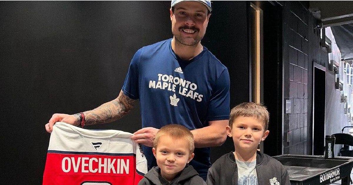 Сыновья форварда «Вашингтона» Александра Овечкина Сергей и Илья сфотографировались с нападающим «Торонто» Остоном Мэттьюсом.