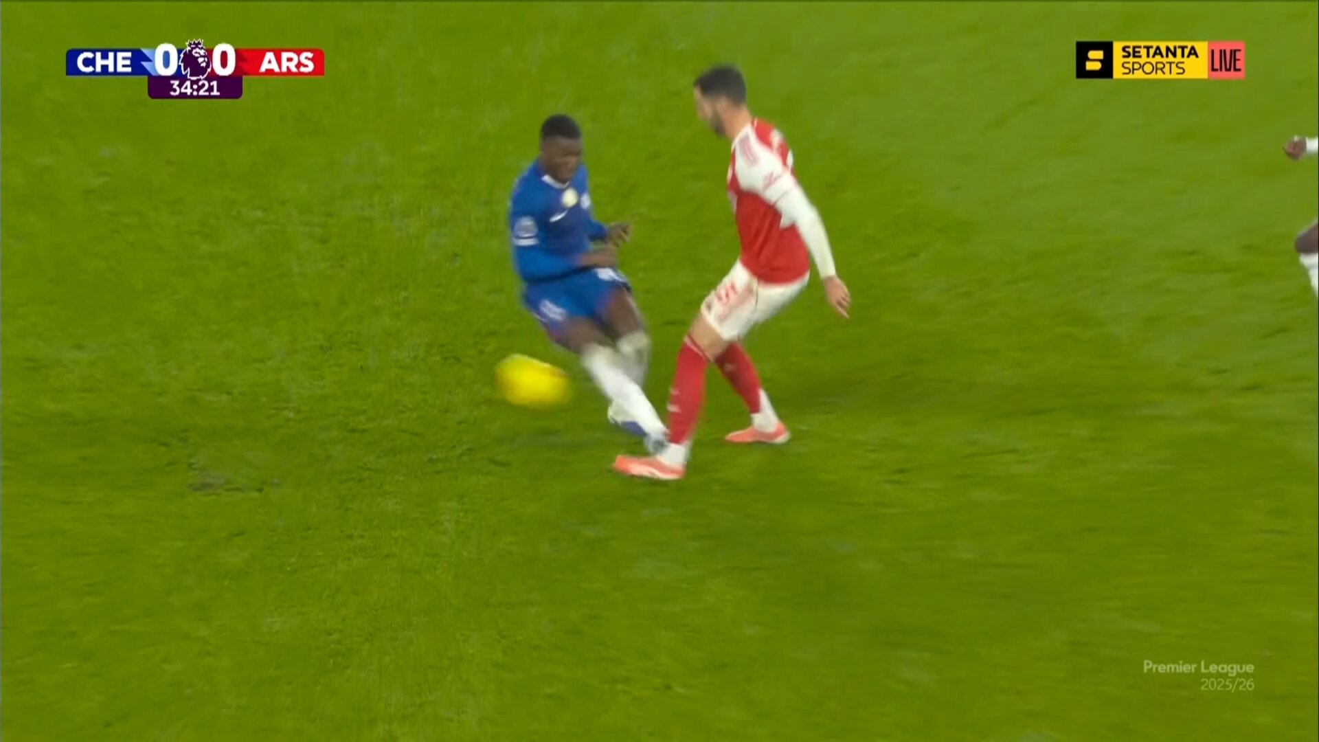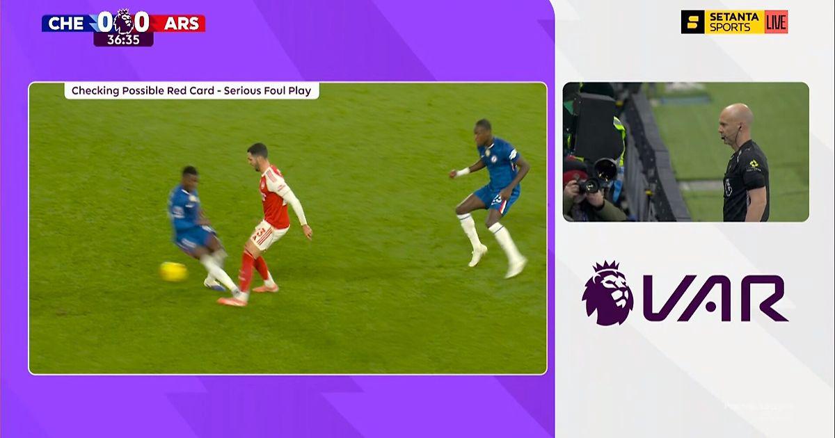 Кайседо удален за удар шипами в лодыжку Мерино на 34-й минуте игры «Челси» с «Арсеналом»