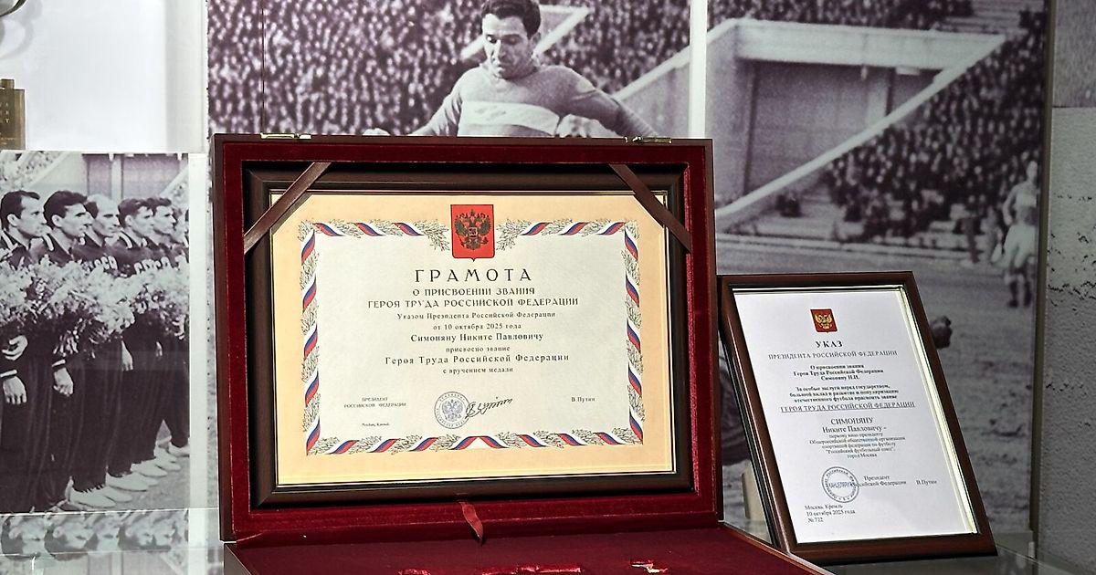 Награду и документы дочери Симоняна Виктории передал генеральный секретарь РФС Максим Митрофанов.