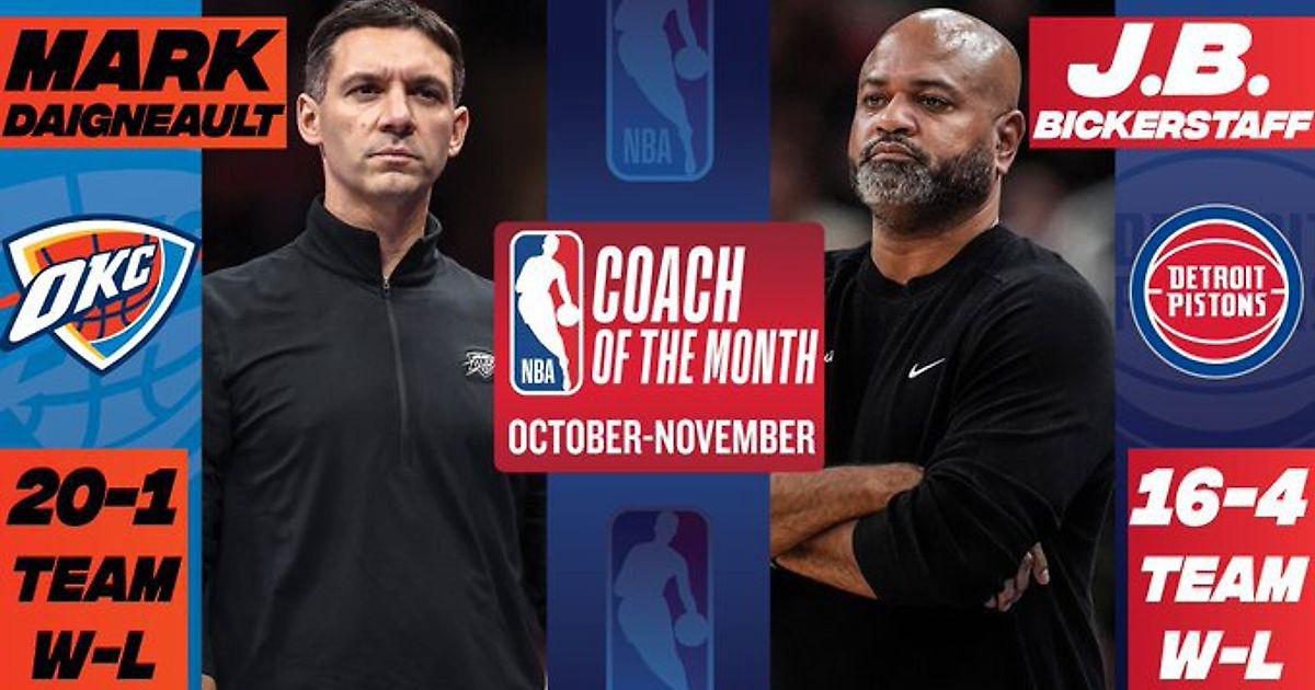 Марк Дэйгнолт и Джей Би Бикерстафф признаны тренерами месяца в НБА.
