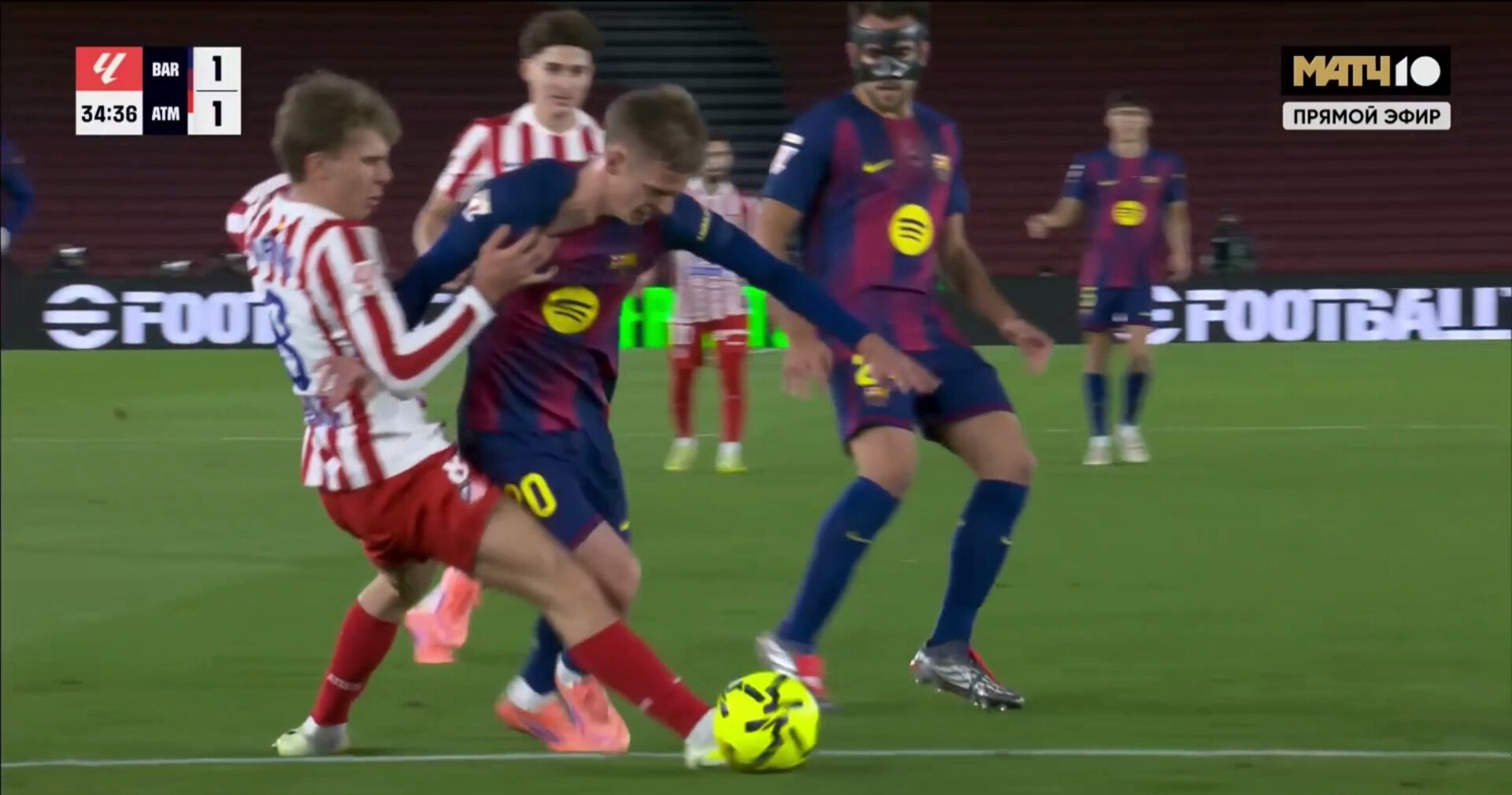 На 35-й минуте перенесенного матча 19-го тура Ла Лиги Пабло Барриос на краю штрафной сбил Дани Ольмо в попытке выбить у соперника мяч.
