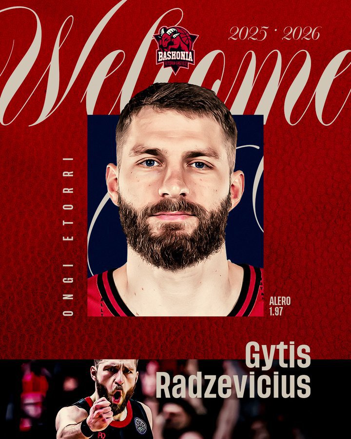 «Баскония» объявила о подписании контракта с литовским форвардом Гитисом Радзявичюсом до конца сезона. 30-летний баскетболист пришел в испанский клуб после ярких выступлений за литовский «Ритас» и сборную Литвы.