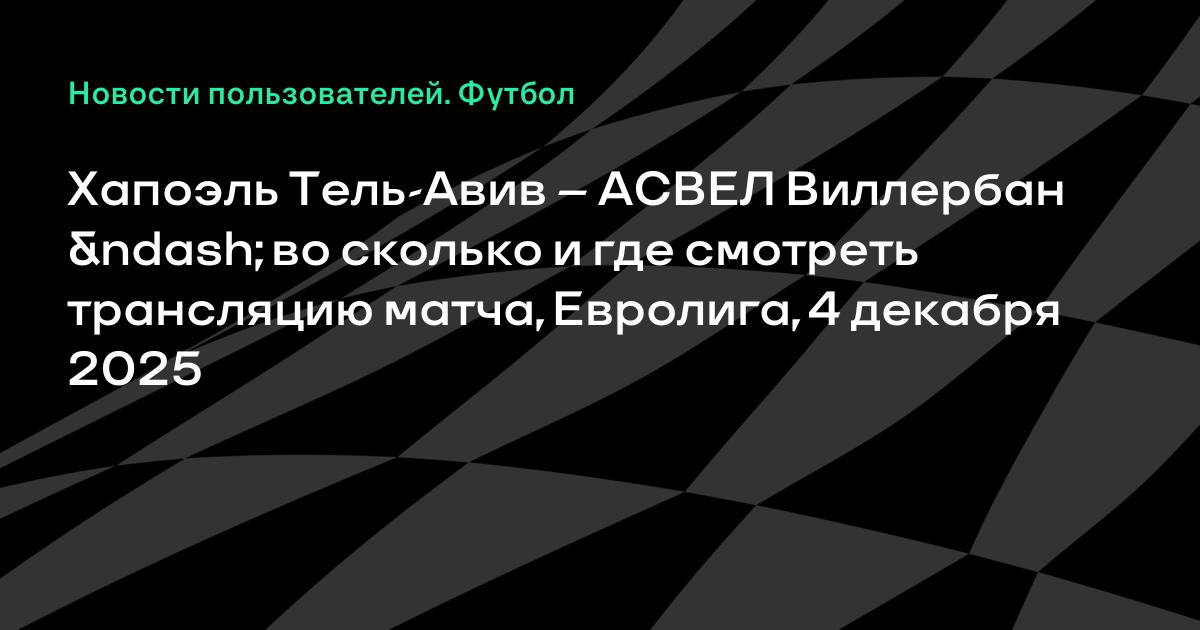 Хапоэль Тель-Авив – АСВЕЛ Виллербан – во сколько и где смотреть трансляцию матча, Евролига, 4 декабря 2025