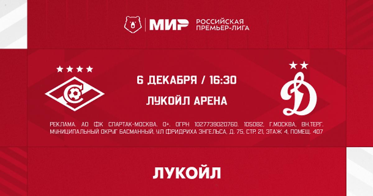 «Спартак» сыграет с «Динамо» в 18-м туре Мир РПЛ.