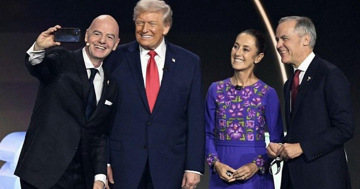 Инфантино сделал селфи с Трампом, президентом Мексики Шейнбаум и премьер-министром Канады Карни во время жеребьевки ЧМ-2026