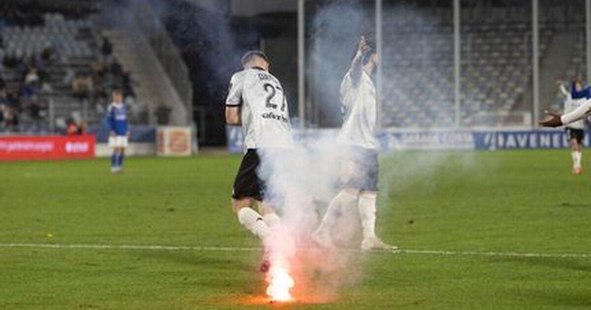Болельщики попали в игрока дымовой шашкой во второй лиге Франции.