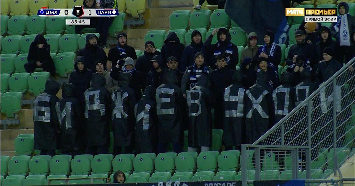 Фанаты махачкалинского «Динамо» показали надпись «Биджиев, уходи» на спинах во время матча с «Пари НН» и скандировали тренеру «Уходи!»