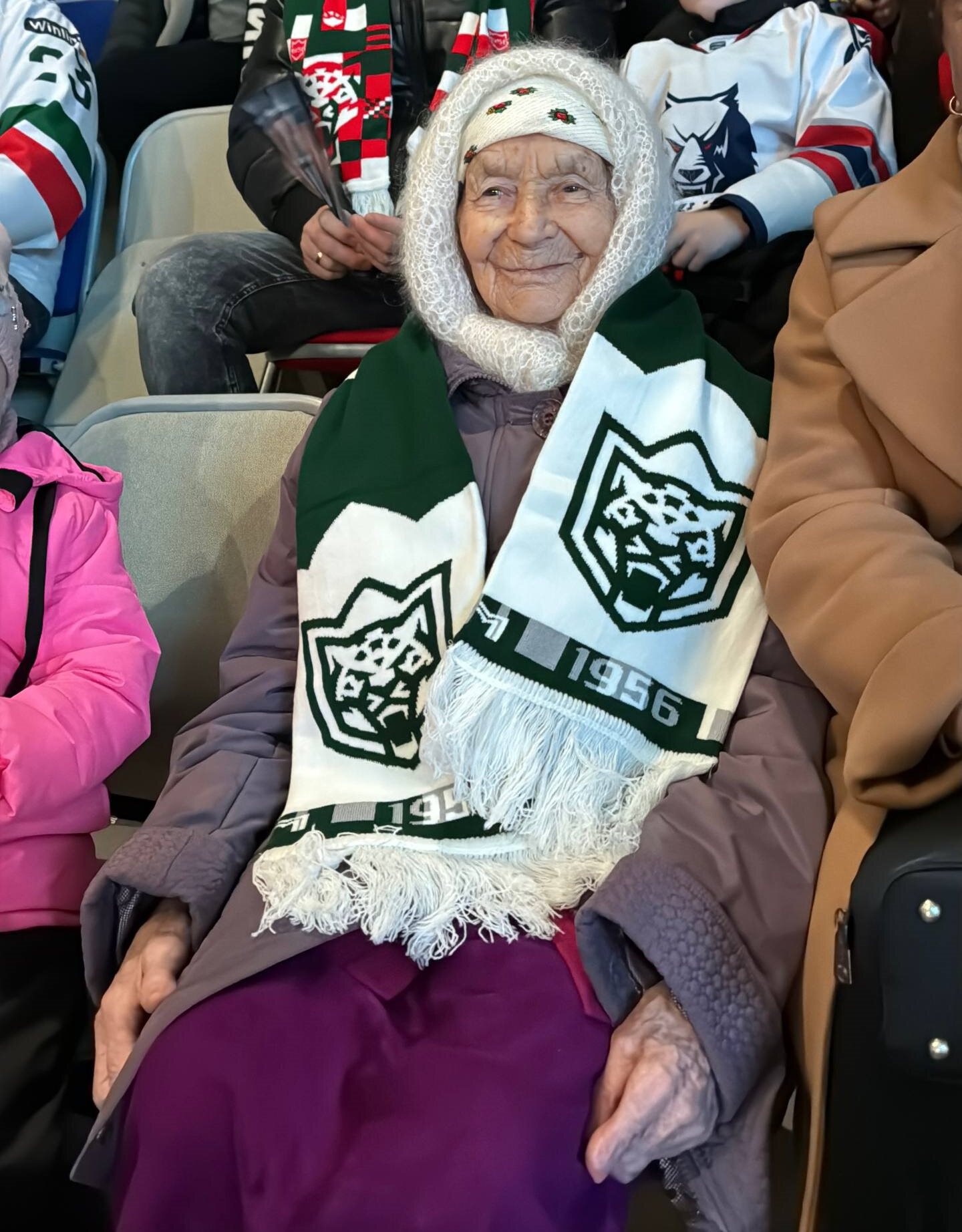 99-летняя болельщица посетила матч «Ак Барса» в Нижнекамске: «Она 10 лет болеет за клуб, следит за каждой игрой, ее кумир − легендарный Зарипов»