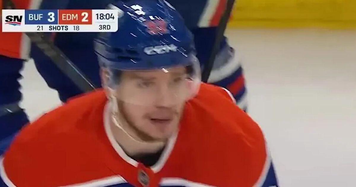 Форвард «Эдмонтона» Василий Подколзин забросил шайбу в матче регулярного чемпионата НХЛ с «Баффало» (3:4 ОТ).