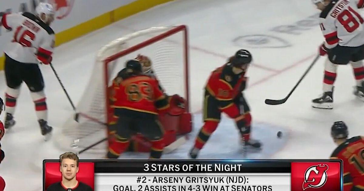 Вторая звезда – форвард «Нью-Джерси» Арсений Грицюк с голом и 2 результативными передачами в матче с «Оттавой» (4:3). Россиянин впервые набрал 3 очка за игру в лиге, «Девилс» прервали серию из 5 поражений.