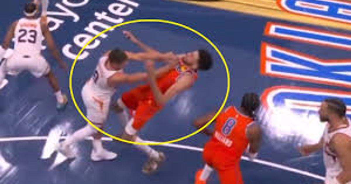 Защитник «Санз» Грэйсон Аллен был удален в четвертьфинальном матче Кубка НБА против «Оклахомы» после того, как сбил с ног центрового «Тандер» Чета Холмгрена.