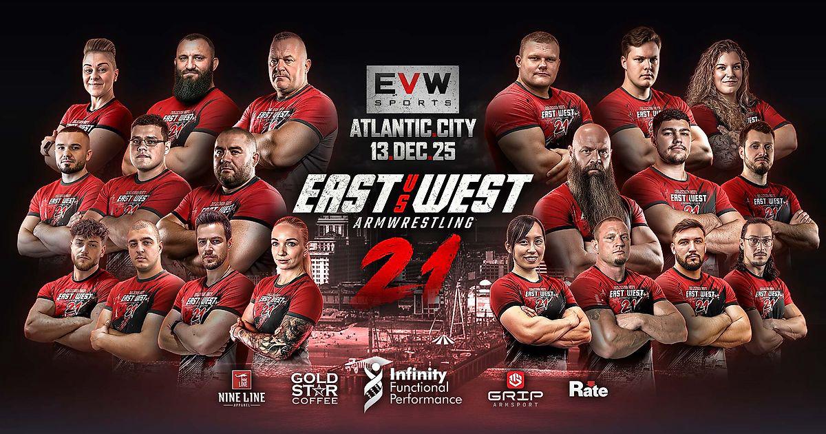 13 декабря в Атлантик-Сити пройдет турнир East vs West 21 по армрестлингу. Россиянин Александр «Schoolboy» Безъязыков победил Рикерда Борнмана из ЮАР в поединке на правых руках, но уступил на левых.