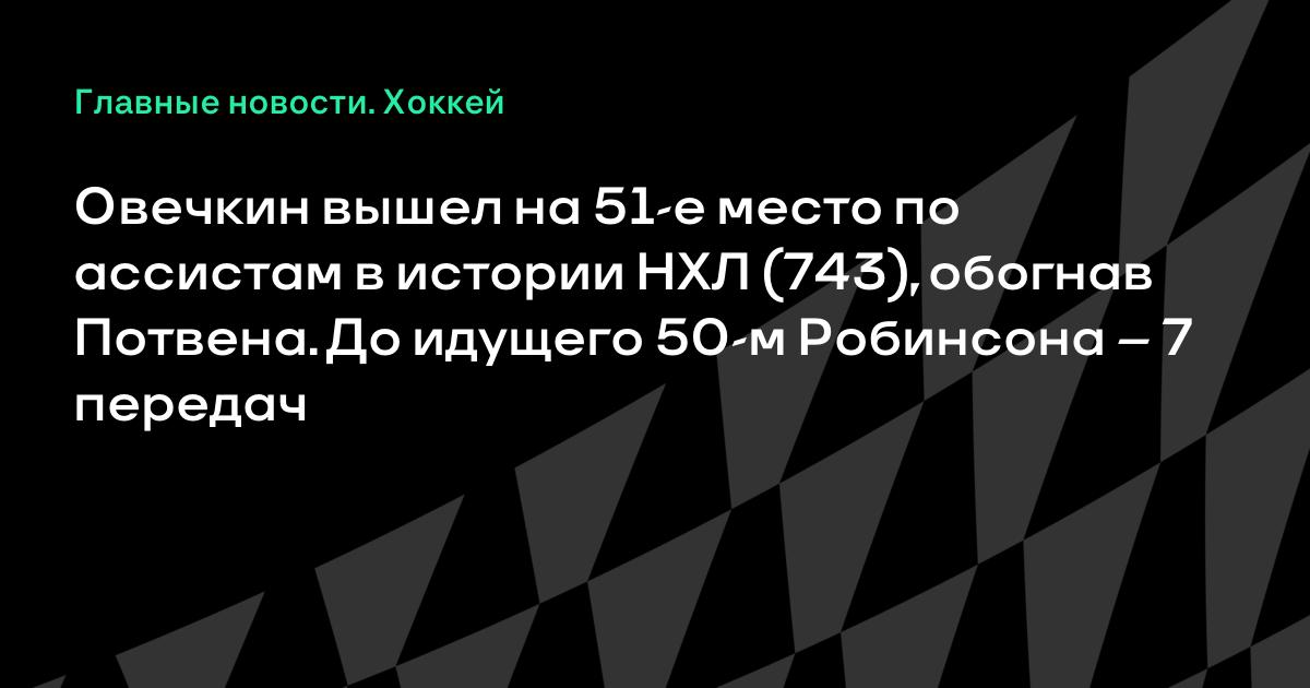 Овечкин вышел на 51-е место по ассистам в истории НХЛ (743), обогнав Потвена. До идущего 50-м Робинсона – 7 передач