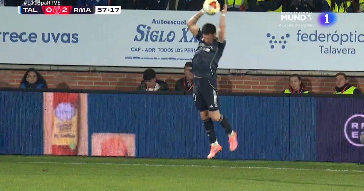 Полузащитник «Реала» Франко Мастантуоно поймал мяч в руки в одном из эпизодов игры с «Талаверой» в 1/16 финала Кубка Испании (3:2).