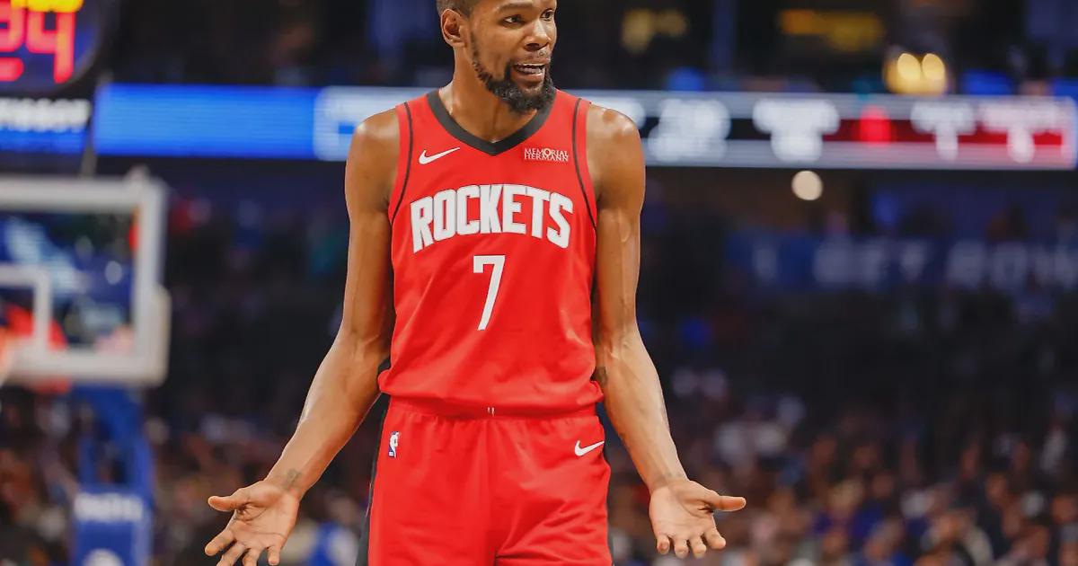 В матче против «Денвера» звездный форвард «Хьюстона» Кевин Дюрэнт эмоционально откликался на разные моменты.