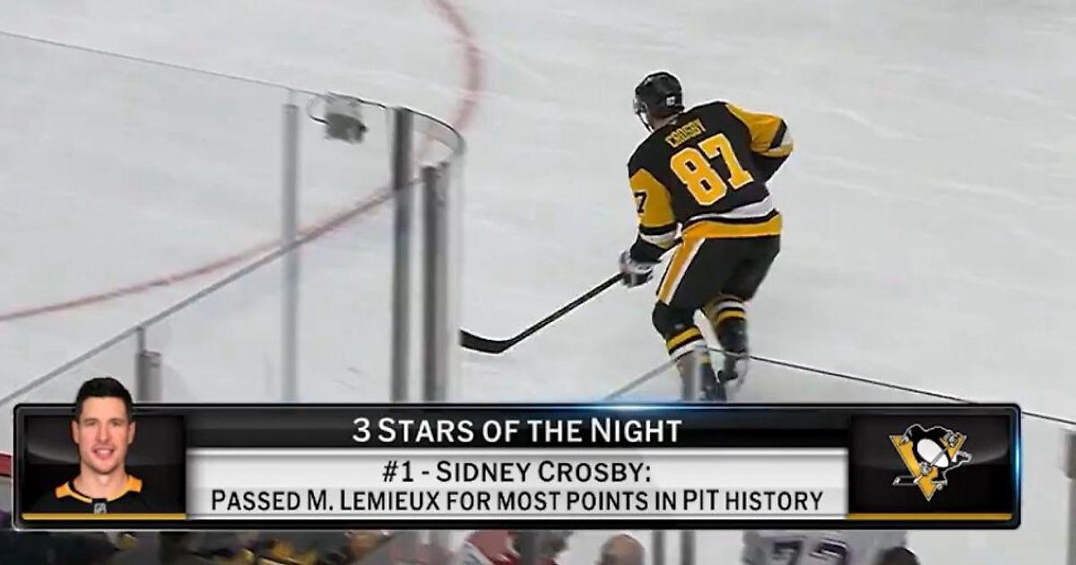 Первая звезда – капитан «Питтсбурга» Сидни Кросби с 2 (1+1) очками в матче с «Монреалем» (4:3 Б). Он стал лучшим бомбардиром в истории «Пингвинс», побив рекорд Марио Лемье (1724 очка против 1723).