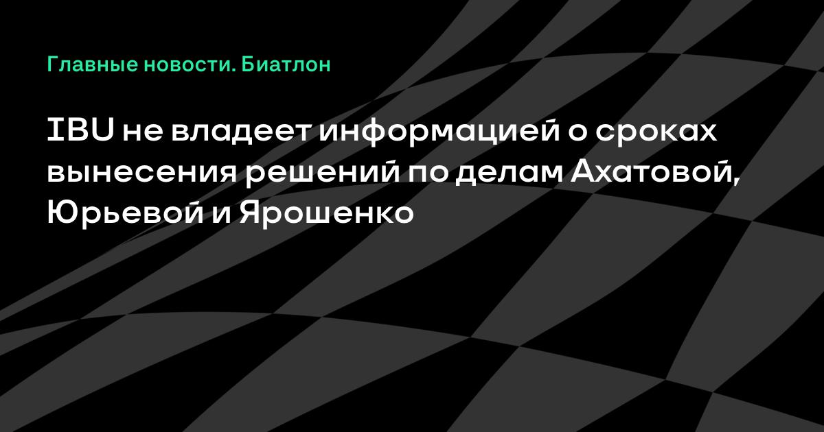 Сегодня Союз биатлонистов России (СБР) получил ответ от Международного союза биатлонистов (IBU) на запрос по поводу сроков вынесения решения по делам Альбины Ахатовой, Екатерины Юрьевой и Дмитрия Ярошенко.