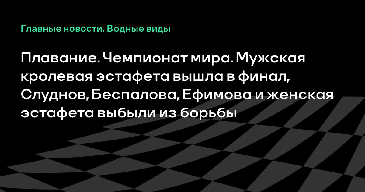 Плавание. Чемпионат мира. Мужская кролевая эстафета вышла в финал, Слуднов, Беспалова, Ефимова и женская эстафета выбыли из борьбы