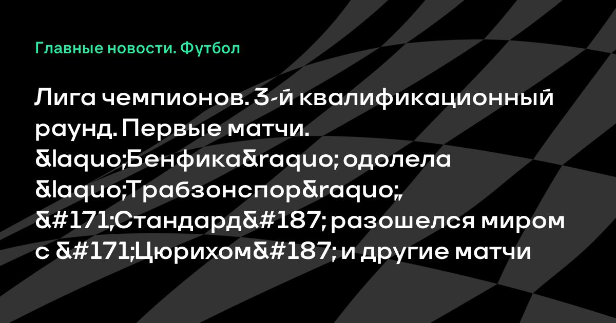 Лига чемпионов. 3-й квалификационный раунд. Первые матчи. «Бенфика» одолела «Трабзонспор», «Стандард» разошелся миром с «Цюрихом» и другие матчи