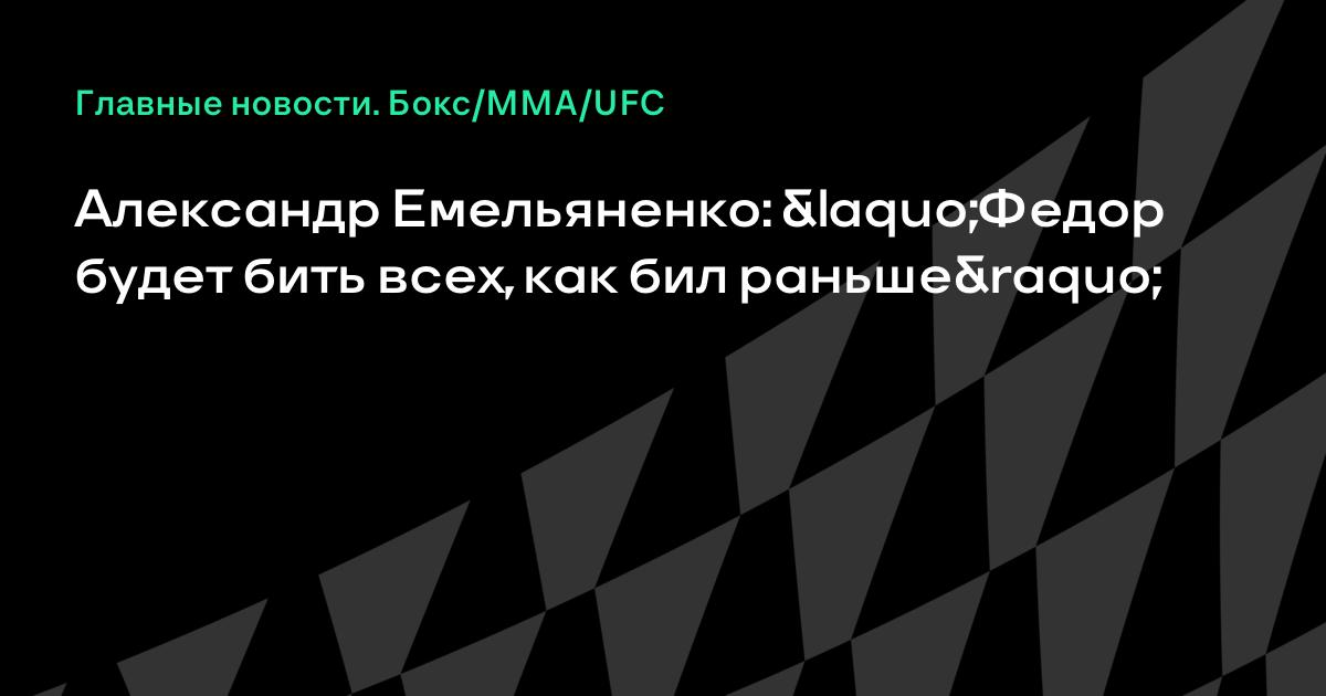 Александр Емельяненко: «Федор будет бить всех, как бил раньше»