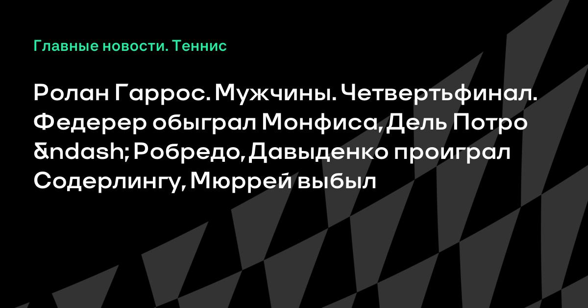 Ролан Гаррос. Мужчины. Четвертьфинал. Федерер обыграл Монфиса, Дель Потро – Робредо, Давыденко проиграл Содерлингу, Мюррей выбыл