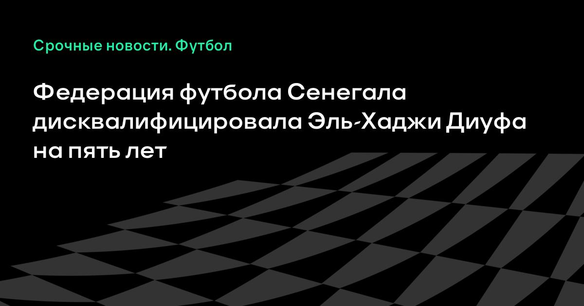 Нападающий «Блэкберн» Эль-Хаджи Диуф был дисквалифицирован Федерацией футбола Сенегала на пять лет от участия в международных матчах за заявление о коррупции в африканском футболе, сообщает AFP.