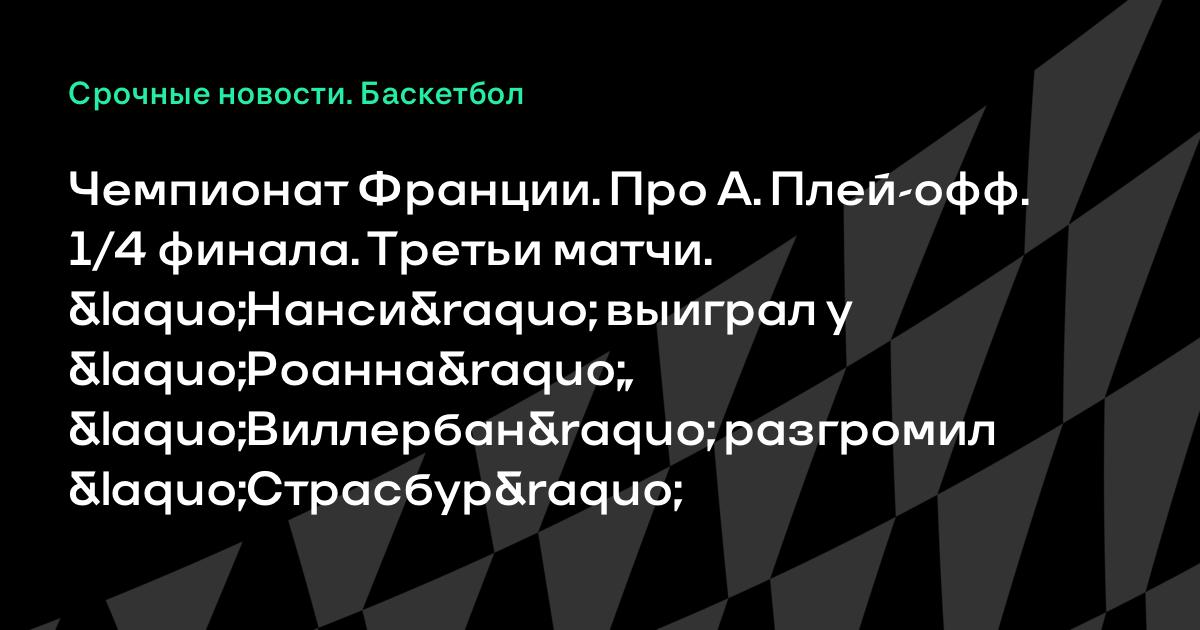 Чемпионат Франции. Про А. Плей-офф. 1/4 финала. Третьи матчи. «Нанси» выиграл у «Роанна», «Виллербан» разгромил «Страсбур»