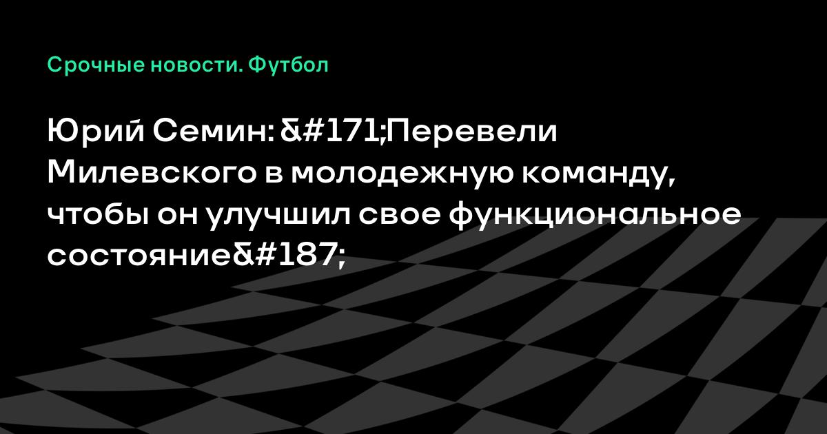 Юрий Семин: «Перевели Милевского в молодежную команду, чтобы он улучшил свое функциональное состояние»