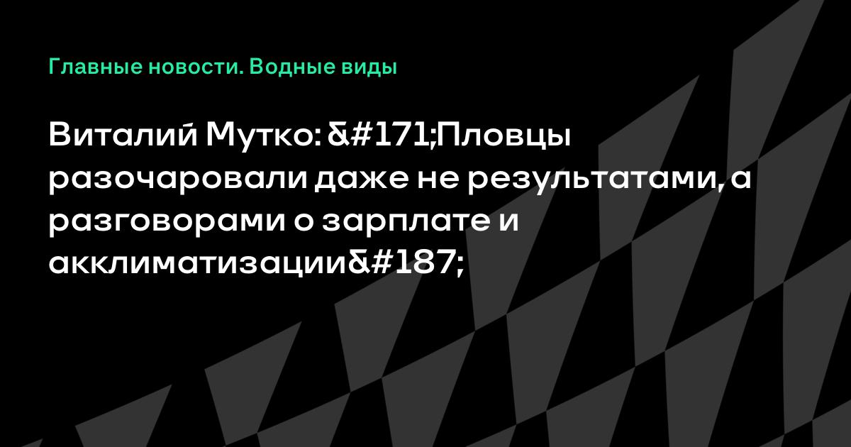 Виталий Мутко: «Пловцы разочаровали даже не результатами, а разговорами о зарплате и акклиматизации»