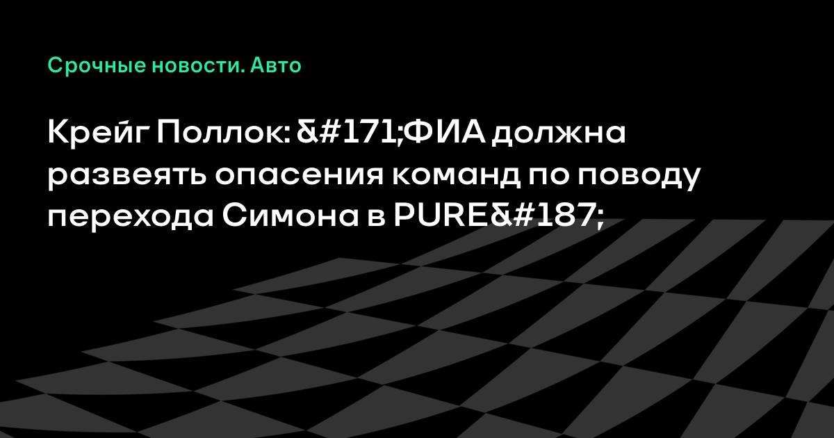 Крейг Поллок: «ФИА должна развеять опасения команд по поводу перехода Симона в PURE»