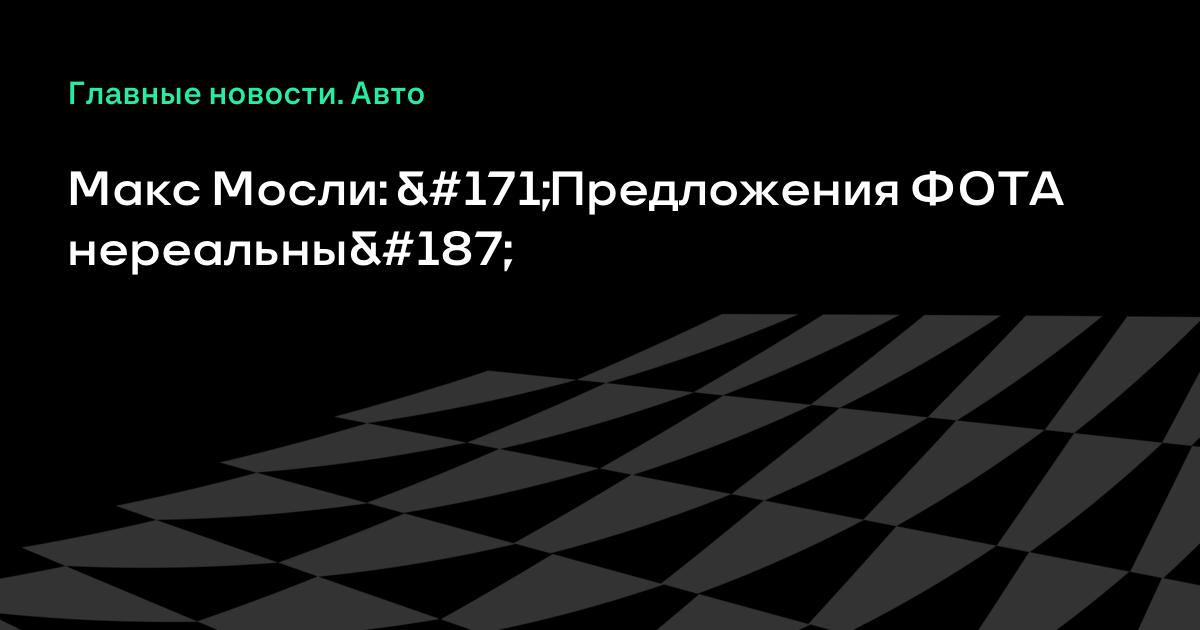 «ФИА устанавливает правила. Мы делали это в течение 60 лет и будем продолжать в том же духе. Не знаю, придем ли мы к какому-нибудь решению, но отдельные предложения команд просто нереальные», сообщил Мосли еженедельнику Motorsport Aktuell.