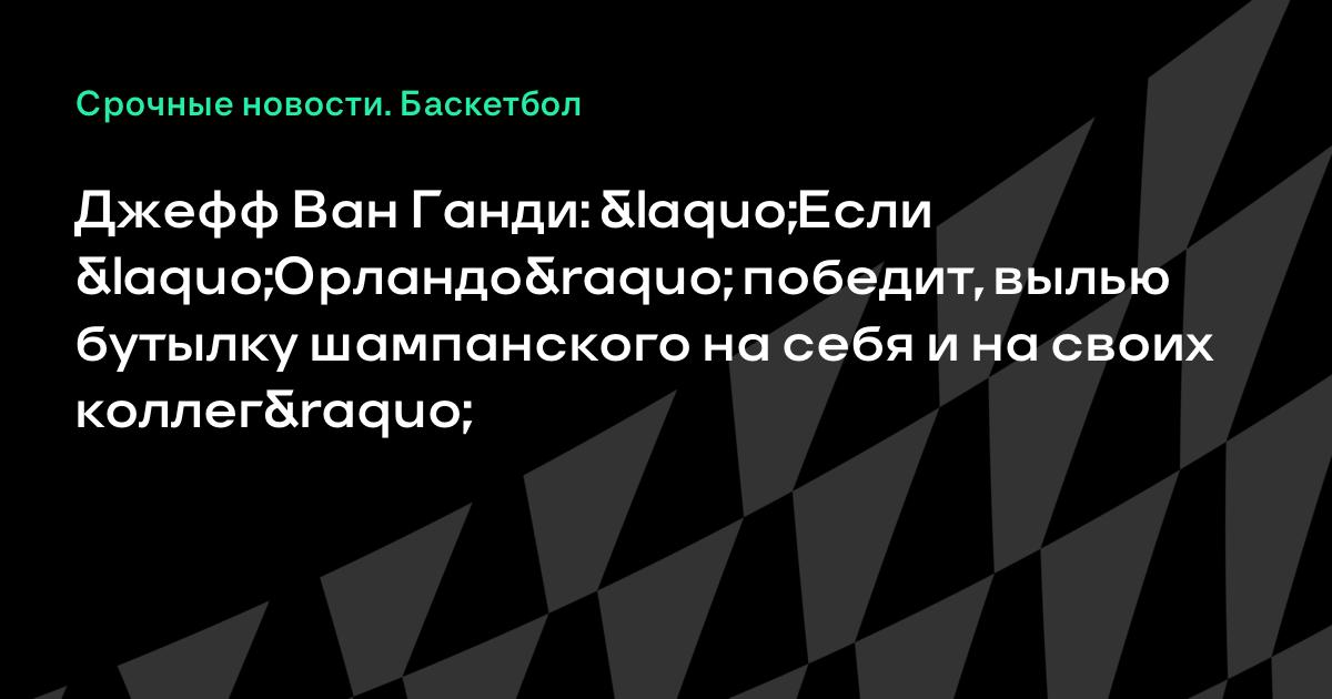 Джефф Ван Ганди: «Если «Орландо» победит, вылью бутылку шампанского на себя и на своих коллег»