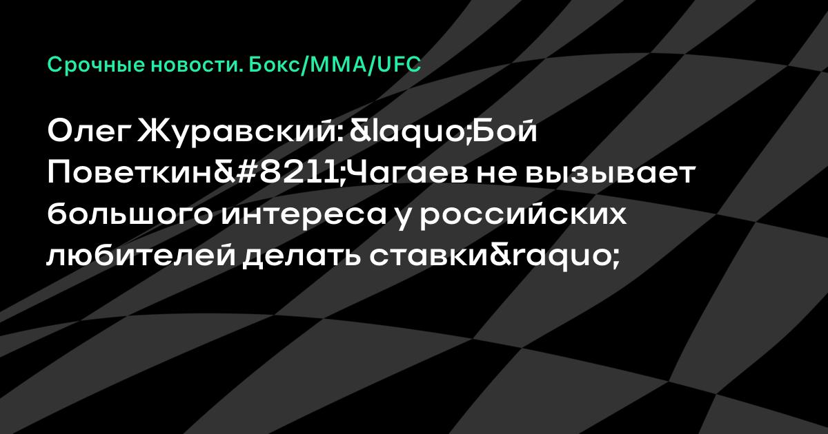 Глава букмекерской конторы «Лига ставок» Олег Журавский считает, что признаков «договорняка» в предстоящем поединке между Поветкиным и Чагаевым (27 августа, Эрфурт), на который букмекерские конторы не принимают ставок, не наблюдается.