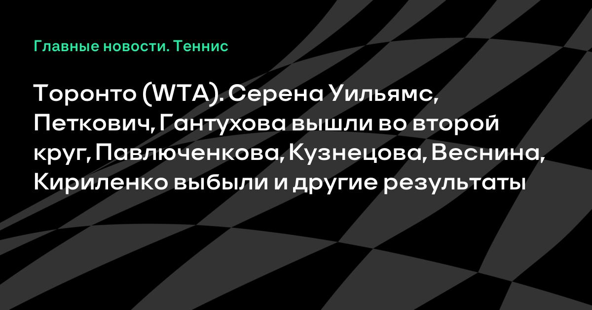 Торонто (WTA). Серена Уильямс, Петкович, Гантухова вышли во второй круг, Павлюченкова, Кузнецова, Веснина, Кириленко выбыли и другие результаты
