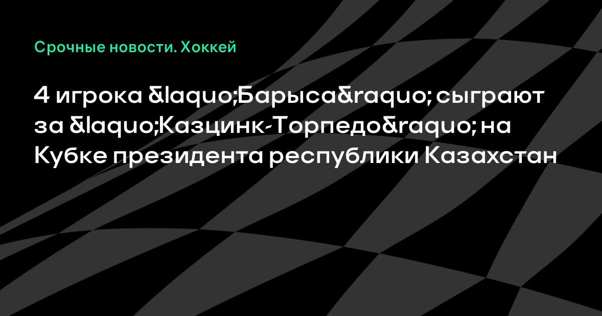 Четыре игрока «Барыса»: Алексей Ишмаметьев, Алексей Воронцов, Андрей Спиридонов и Евгений Рымарев сыграют за «Казцинк-Торпедо» на предстоящем Кубке президента республики Казахстан, сообщает Шайба.kz.