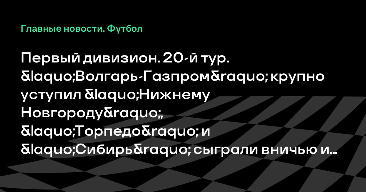 Первый дивизион. 20-й тур. «Волгарь-Газпром» крупно уступил «Нижнему Новгороду», «Торпедо» и «Сибирь» сыграли вничью и другие результаты