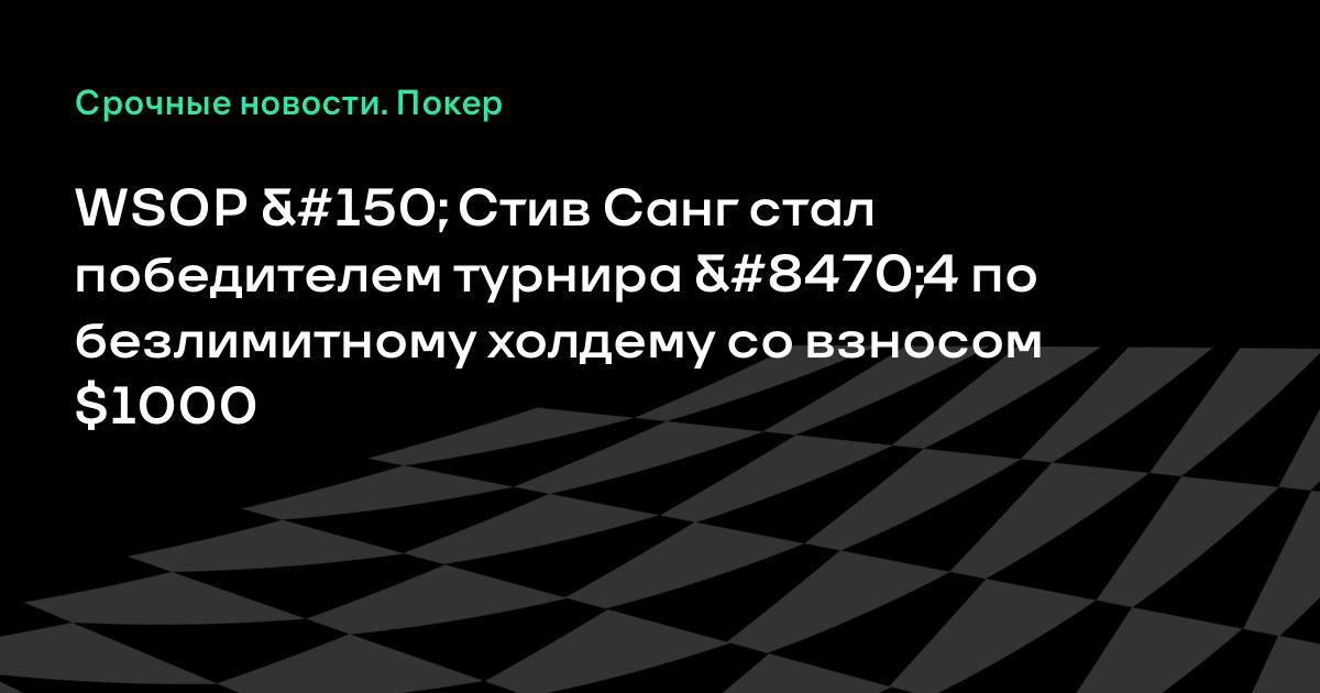 WSOP Стив Санг стал победителем турнира №4 по безлимитному холдему со взносом $1000