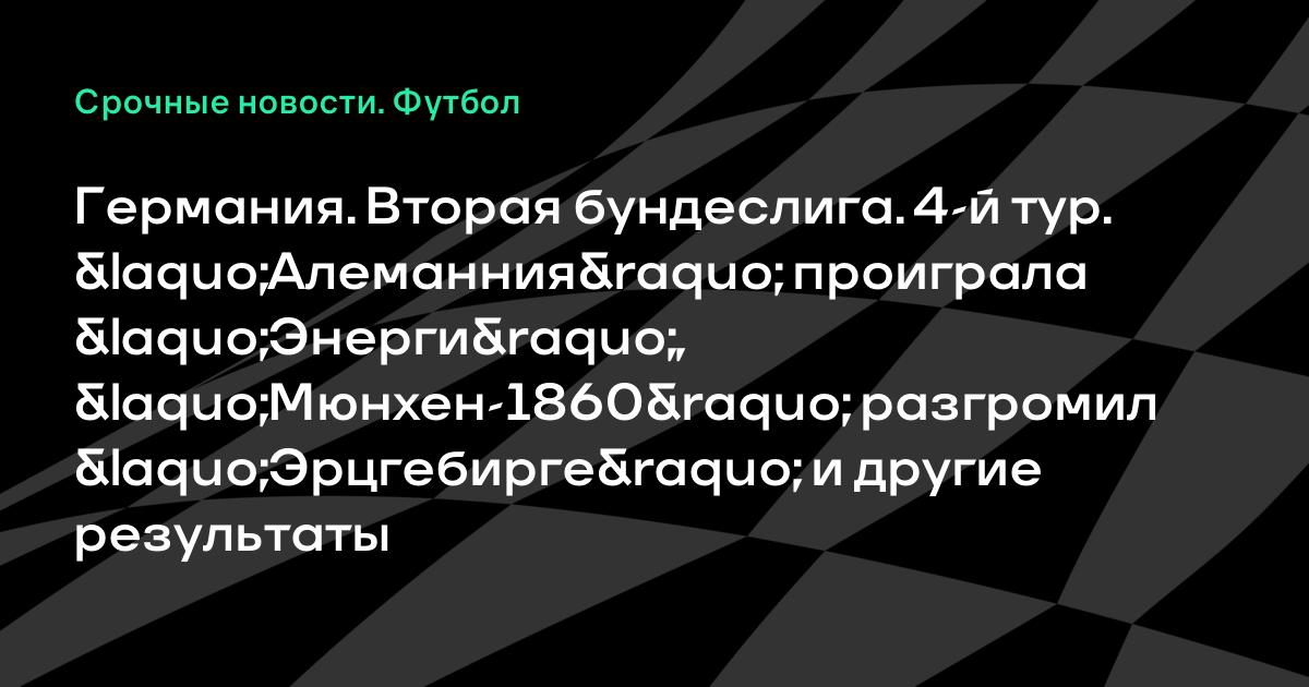 Германия. Вторая бундеслига. 4-й тур. «Алеманния» проиграла «Энерги», «Мюнхен-1860» разгромил «Эрцгебирге» и другие результаты