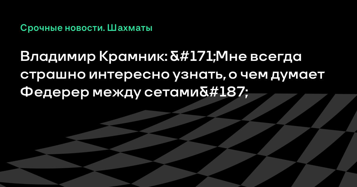Владимир Крамник: «Мне всегда страшно интересно узнать, о чем думает Федерер между сетами»