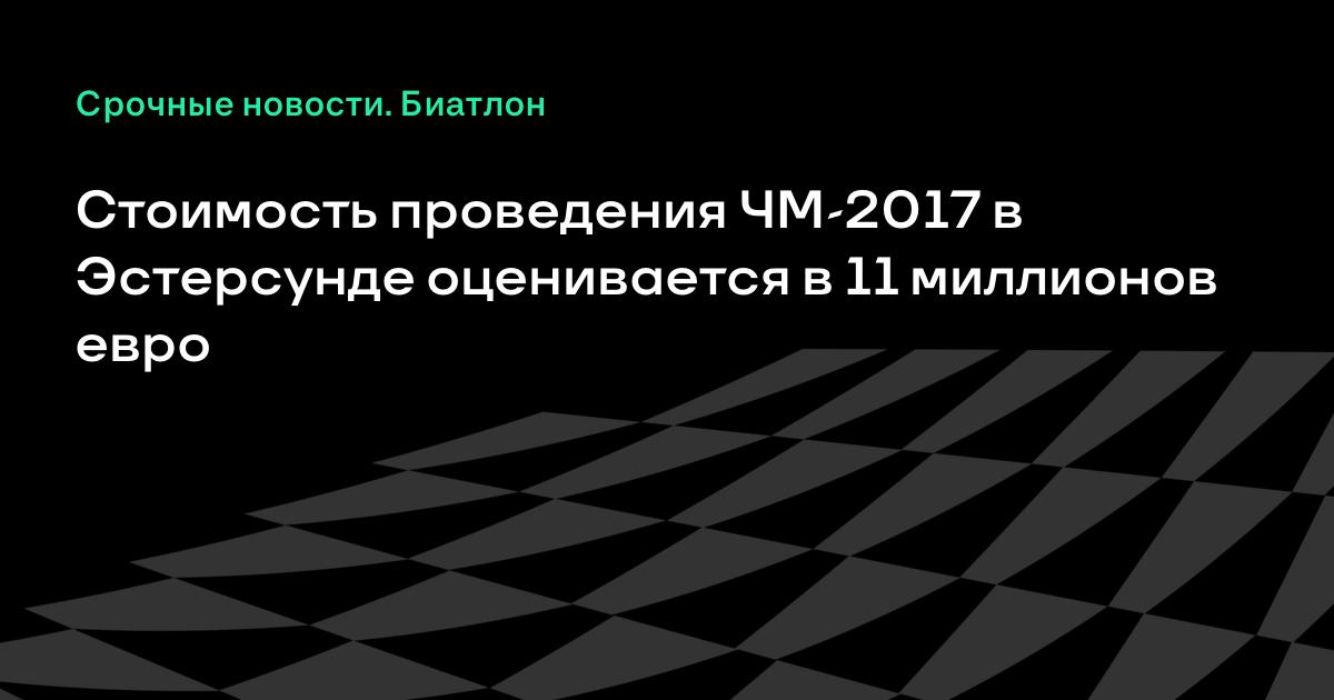 Стоимость проведения ЧМ-2017 в Эстерсунде оценивается в 11 миллионов евро